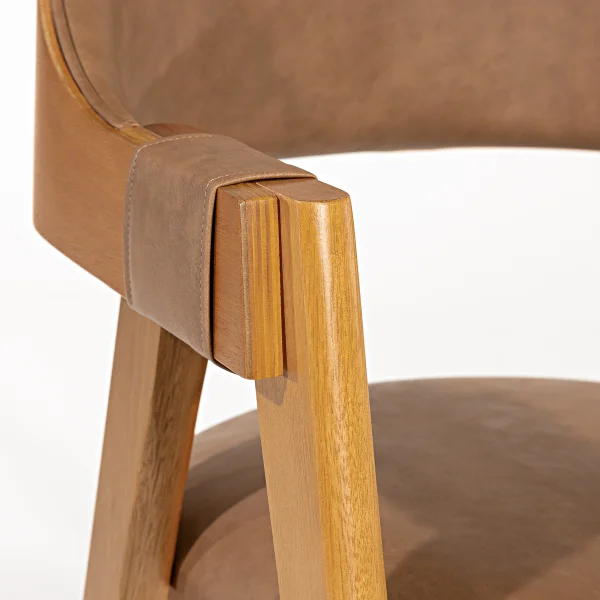 O assento macio e o encosto ergonomicamente desenhado proporcionam conforto sem igual, distribuindo o peso de maneira equilibrada e reduzindo a tensão na coluna durante o uso prolongado. As linhas modernas se adaptam tanto a ambientes minimalistas quanto a espaços clássicos, garantindo versatilidade na composição do ambiente. A Base em eucalipto de reflorestamento confere robustez à estrutura, enquanto o estofado em tecido de alta densidade oferece toque aconchegante e sensação de acolhimento em todas as ocasiões.