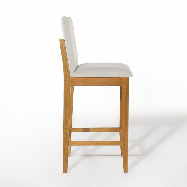 A Banqueta Berlim é ideal para quem busca uma peça-chave para cozinhas americanas, bancadas ou áreas de convivência. A combinação entre a madeira pinhão e o linho off white permite fácil integração com estilos que vão do rústico ao contemporâneo.