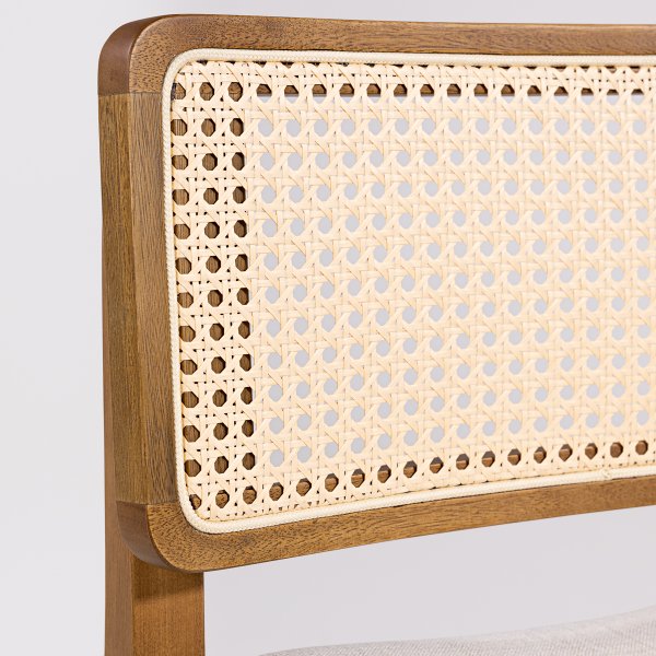 O peso total da peça é de 10,1 kg e ela suporta até 120 kg, sendo resistente e durável para o uso cotidiano. Seu visual combina com diferentes propostas decorativas, desde o rústico ao contemporâneo, especialmente em composições que valorizam materiais naturais. A combinação entre madeira, tela e tecido proporciona uma harmonia visual que agrada aos mais exigentes.