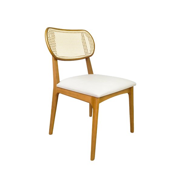 Combine a Cadeira Siena com mesas de tampo amadeirado ou vidro off-white para um visual "clean" e sofisticado. A tela natural traz uma textura que quebra a monotonia do ambiente, deixando-o muito mais acolhedor.