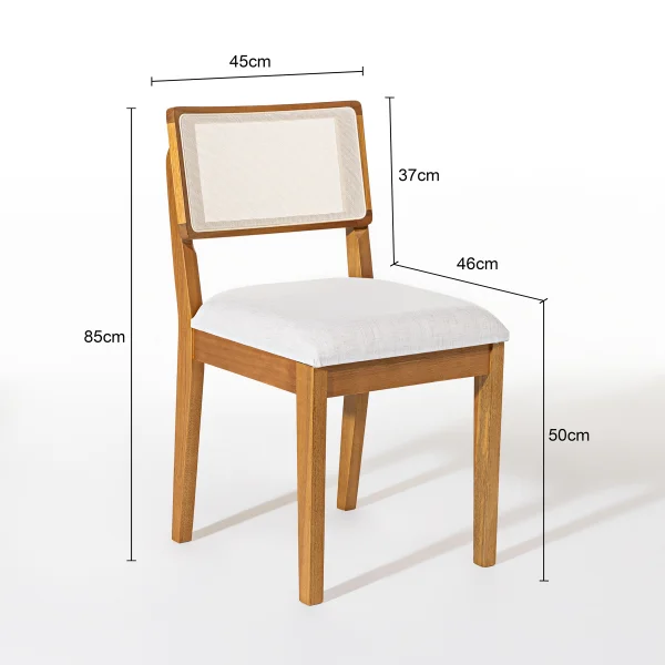 Feita com materiais de alta qualidade, a Cadeira Ibiza suporta até 150 kg, garantindo resistência e longevidade. Seu assento acolchoado proporciona um conforto ideal para longos momentos à mesa, seja para refeições especiais, reuniões ou momentos de lazer. A ergonomia da peça foi pensada para oferecer suporte e bem-estar, com uma altura e profundidade que favorecem uma postura confortável.