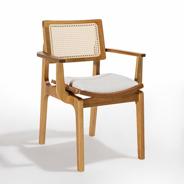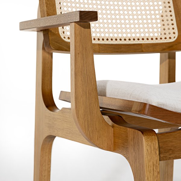 A Cadeira Vegas traz uma estética refinada e versátil, perfeita para quem deseja um ambiente sofisticado e acolhedor. O encosto com tela sextavada natural adiciona leveza ao design, criando um equilíbrio visual entre o tradicional e o contemporâneo. A combinação da madeira pinhão com o tecido linho palha confere um toque de sofisticação discreta, permitindo que a peça se encaixe em diversos estilos de decoração.