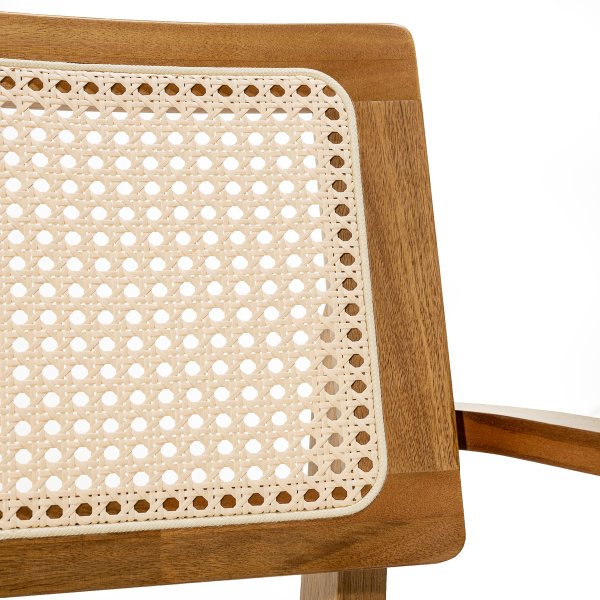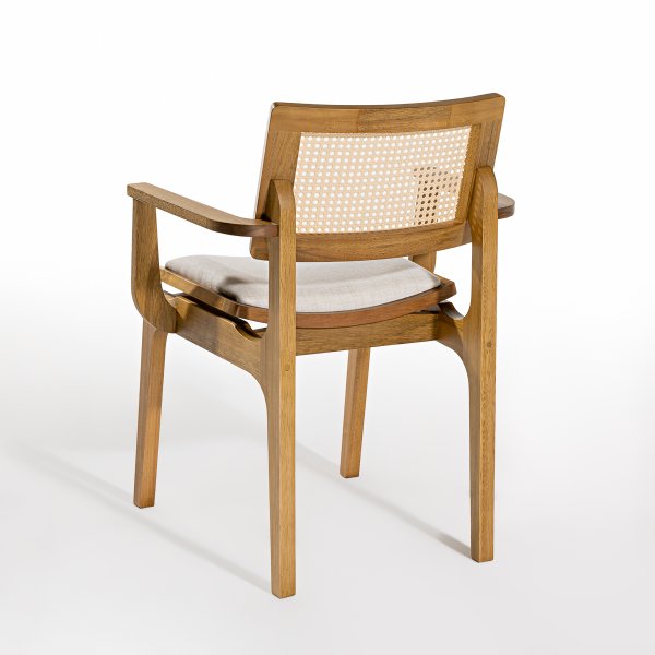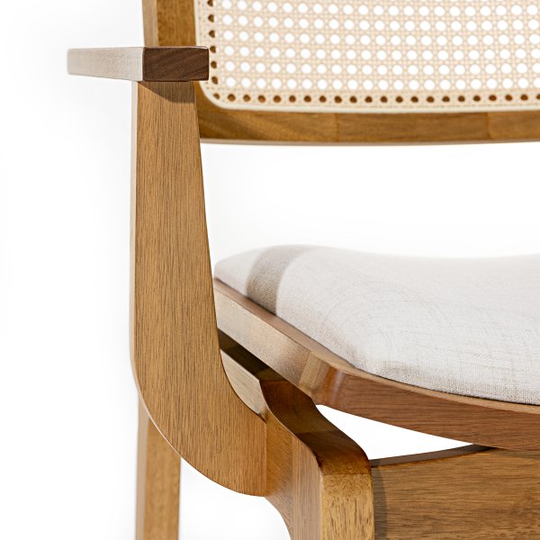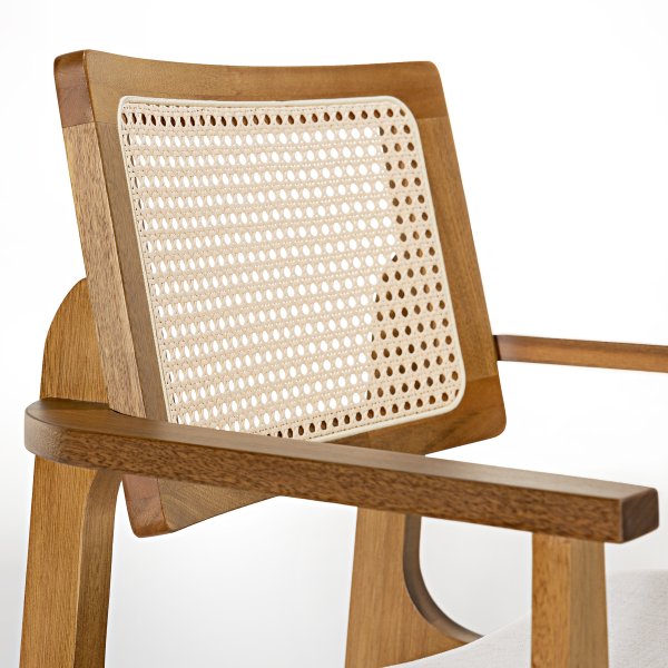 Materiais de alta qualidade: Madeira maciça de eucalipto, tela sextavada natural e tecido linho premium. Estética sofisticada: Um design que combina com estilos clássicos e contemporâneos. Conforto incomparável: Assento estofado macio e braços de apoio ergonômicos. Durabilidade e resistência: Suporta até 150 kg, garantindo estabilidade e segurança. Produto enviado montado: Pronto para uso, sem preocupações com montagem.