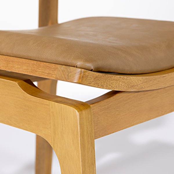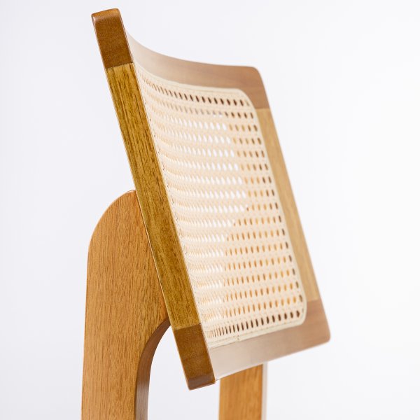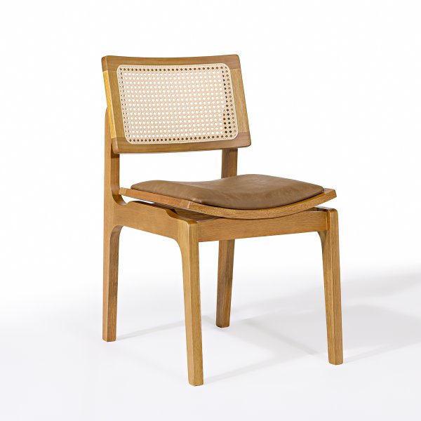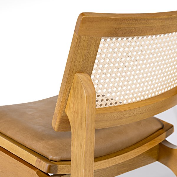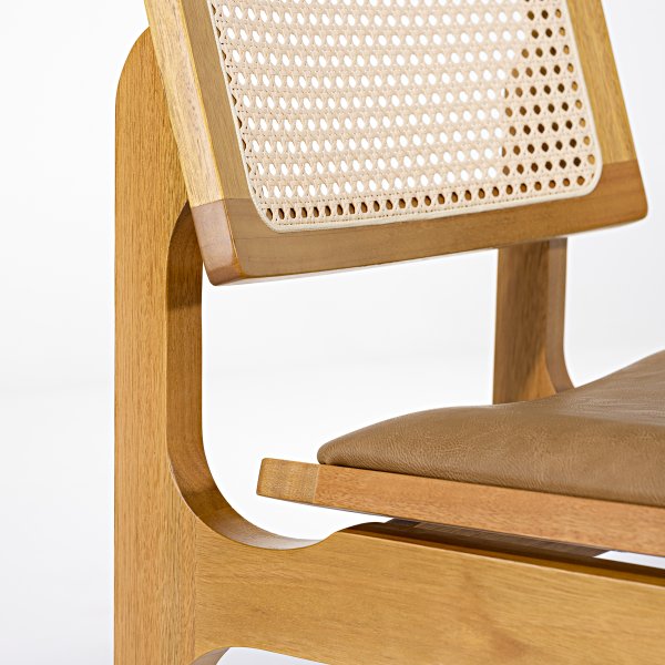 O design da Cadeira Vegas se destaca pela combinação de materiais e texturas. O encosto em telinha natural sextavada adiciona um toque artesanal e de leveza ao móvel, contrastando com a robustez da madeira maciça e o conforto do estofado em couro sintético caramelo. Essa união cria uma estética única que se adapta a diversos ambientes. Conheça a coleção completa de Cadeiras de Madeira da Exclusive Decor e encontre a peça perfeita para o seu ambiente.