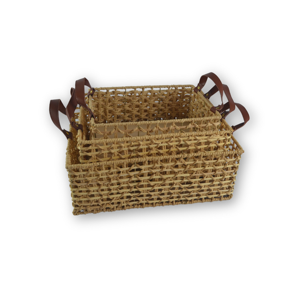 Cada cesto possui fundo em madeira maciça, garantindo resistência e durabilidade. As alças facilitam o transporte e o manuseio, tornando-os ideais para organizar e guardar diversos objetos, desde itens de uso diário até objetos decorativos.