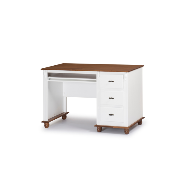 Transforme seu home office em um espaço confortável e funcional com a mesa de escritório de madeira. Ela tem um design elegante e sofisticado, com 3 gavetas espaçosas que deslizam suavemente e permitem organizar seus documentos e objetos pessoais. A mesa é feita de madeira taeda de alta qualidade, com acabamento em verniz nos tons amadeirados e em MDF com acabamento laca nos tons coloridos. Escolha a cor que mais combina com o seu estilo e aproveite o conforto e a praticidade da mesa de escritório de madeira.
