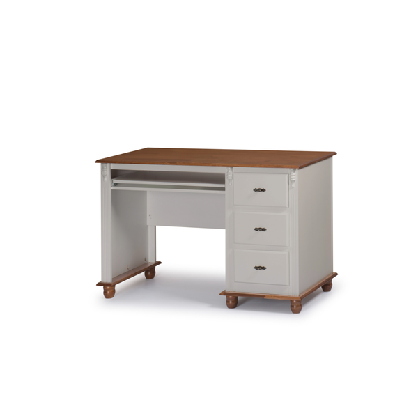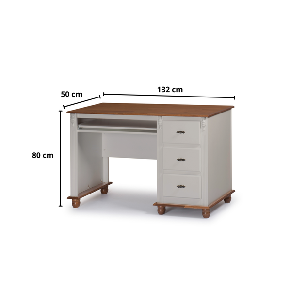 Transforme seu home office em um espaço confortável e funcional com a mesa de escritório de madeira. Ela tem um design elegante e sofisticado, com 3 gavetas espaçosas que deslizam suavemente e permitem organizar seus documentos e objetos pessoais. A mesa é feita de madeira taeda de alta qualidade, com acabamento em verniz nos tons amadeirados e em MDF com acabamento laca nos tons coloridos. Escolha a cor que mais combina com o seu estilo e aproveite o conforto e a praticidade da mesa de escritório de madeira.