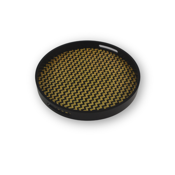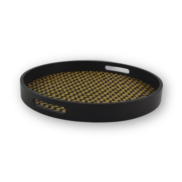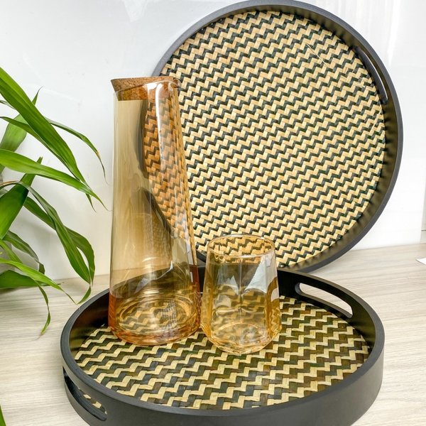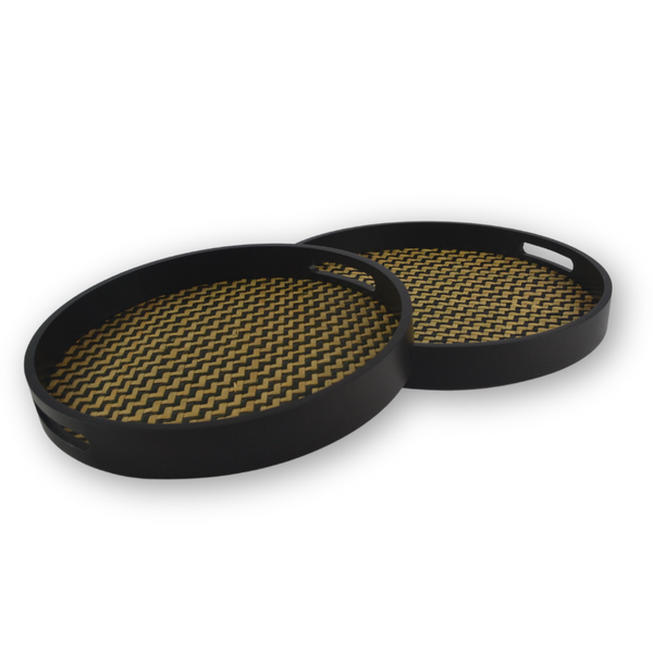 Kit Bandeja Madeira Redonda Boho Preta 2 Peças