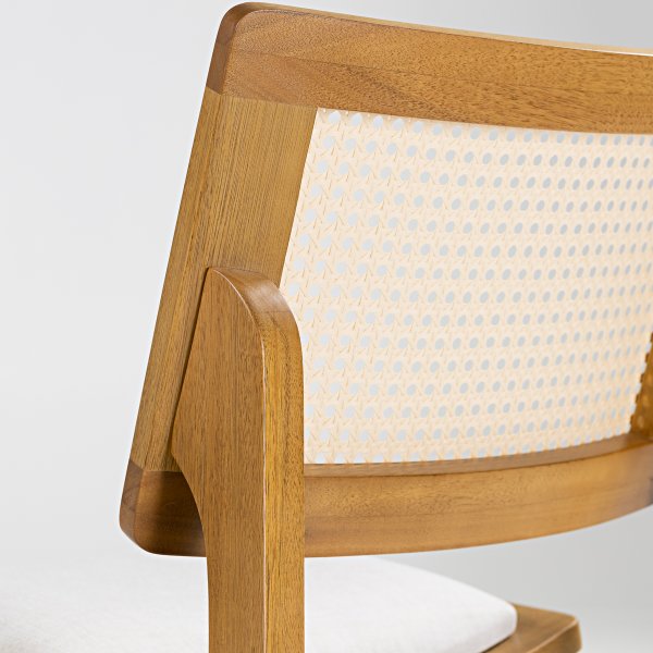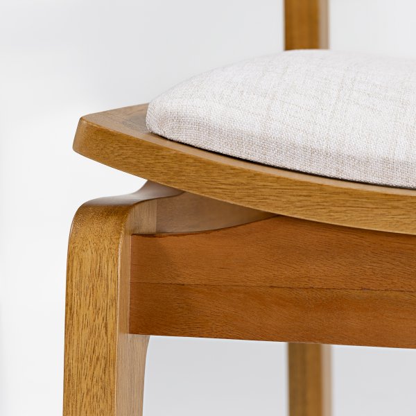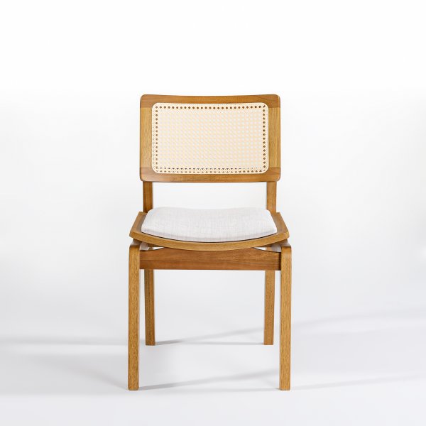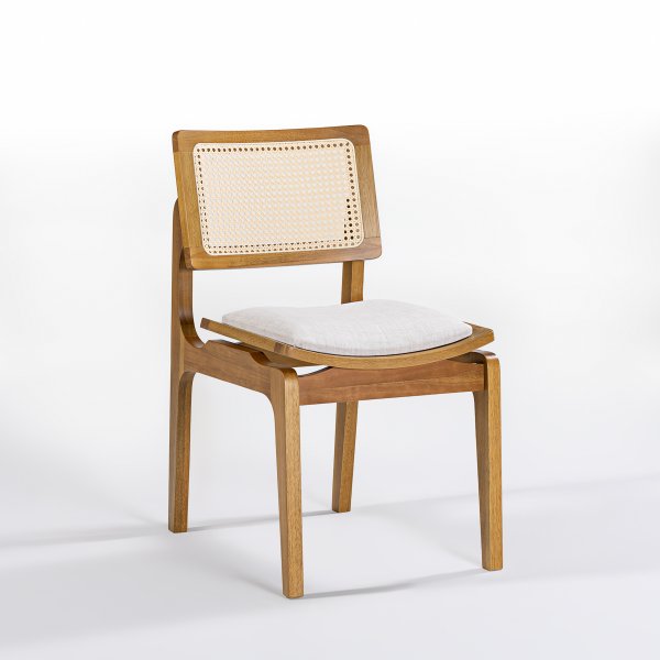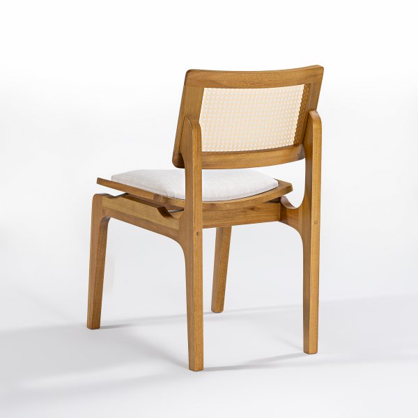 A cadeira é muito durável. Sua estrutura em madeira maciça de eucalipto garante a solidez da peça, projetada para suportar até 120 Kg cada uma. Isso a torna ideal para o uso diário, oferecendo segurança e resistência.