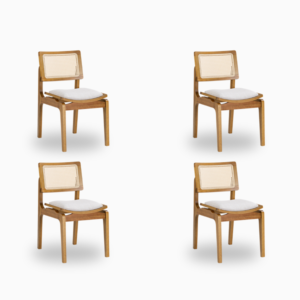 A Exclusive Decor tem o prazer de apresentar o Kit de 4 Cadeiras Vegas, a solução ideal para quem busca renovar a sala de jantar com elegância e praticidade. Fabricadas com madeira maciça de eucalipto e com um assento estofado em linho na cor palha, as cadeiras possuem um design moderno e atemporal. O encosto em palha sextavada natural adiciona um toque artesanal e de sofisticação, transformando qualquer ambiente em um espaço mais acolhedor. Além de serem um móvel prático, elas já vêm montadas, garantindo que você comece a usá-las assim que chegam.