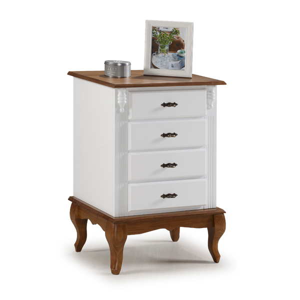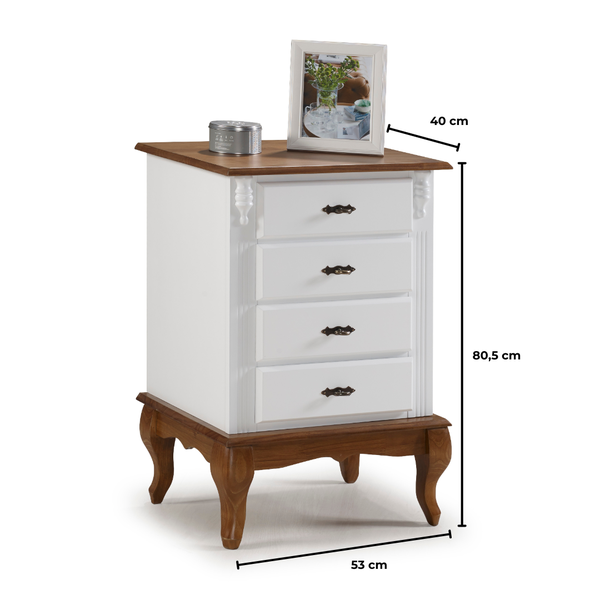 Mesa de Cabeceira 4 Gavetas Pés Luiz XV Branco