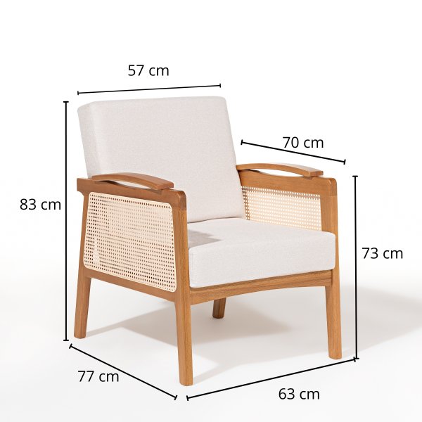 Feita com materiais de alta qualidade, a Poltrona Valência foi projetada para durar e resistir ao uso diário. A madeira maciça de eucalipto oferece robustez e estabilidade, enquanto o tecido bouclé garante que a poltrona se mantenha linda por muito mais tempo. Para a manutenção, basta usar um pano levemente umedecido com água e detergente neutro. Evite produtos químicos e abrasivos para preservar a beleza e a qualidade do tecido e da madeira.