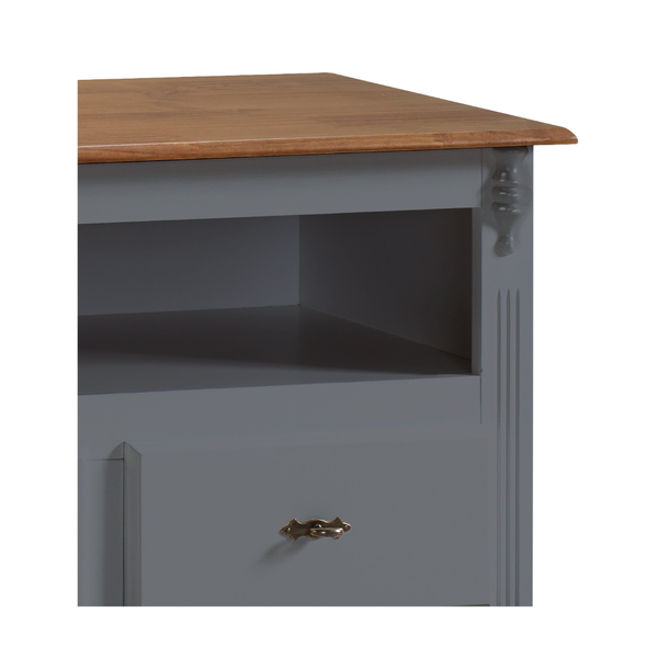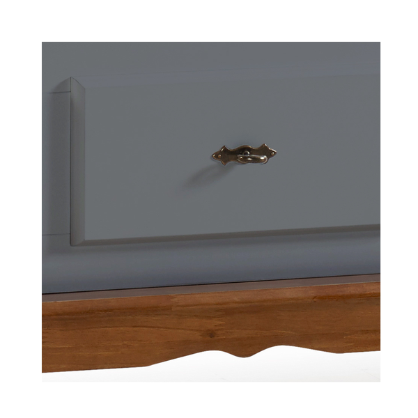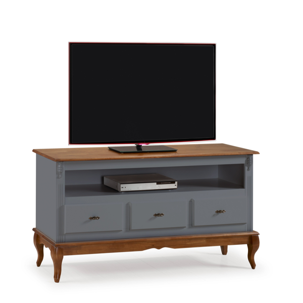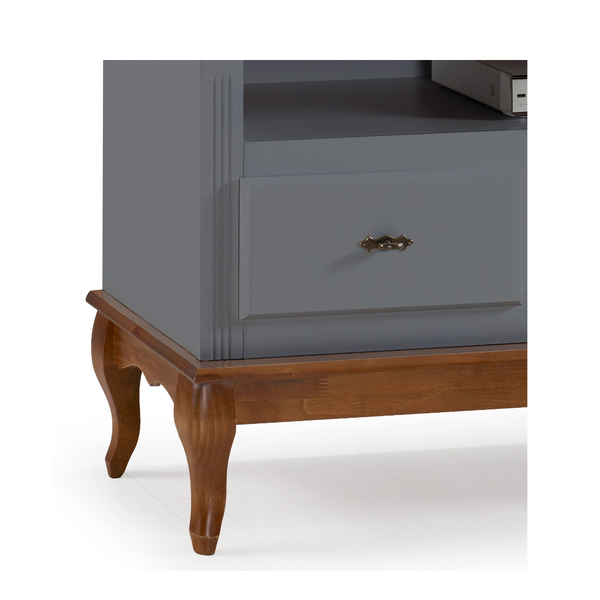 Rack Clássico 3 Gavetas com Nicho Madeira Maciça Pés Luiz XV Cinza
